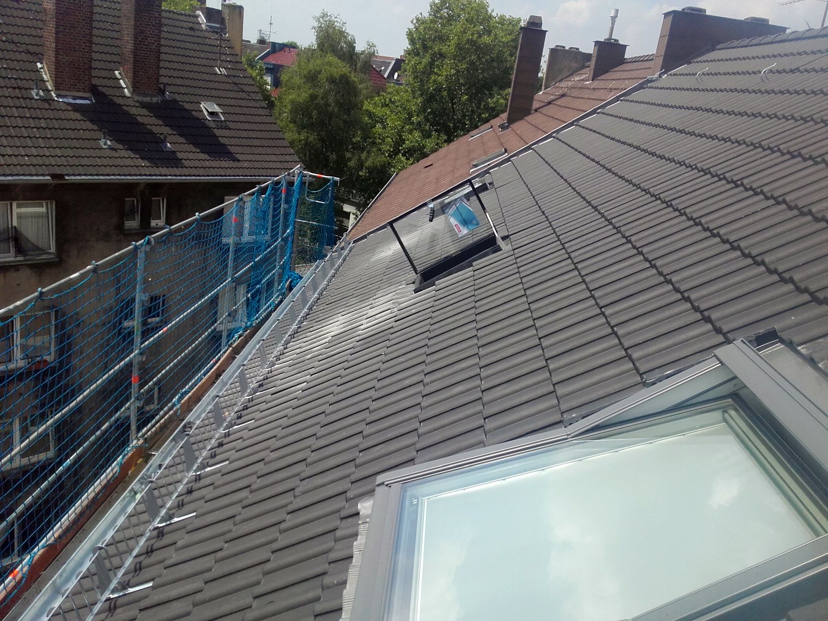 Velux Dachfenster sorgen für optimale Lichtverhältnisse in der Räullichkeiten und die montierten Sicherheitsdachhaken gewährleisten dem ausführenden Handwerker